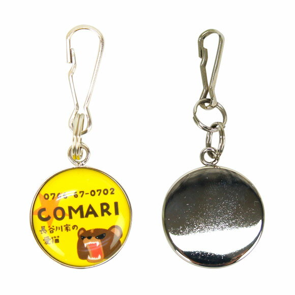 小さなコイン型の丸いプレートに可愛い絵柄が入っていて、 一見迷子札には見えないくらい、とってもオシャレです! 絵柄の中に、ワンちゃんの名前や電話番号などを 入れて、貴方だけの1枚をお作りします。