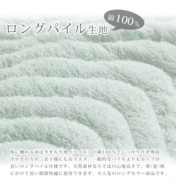 ふんわり柔らかいタオルの肌触りで、しっかり寝汗を吸水してくれるので蒸れにくい。